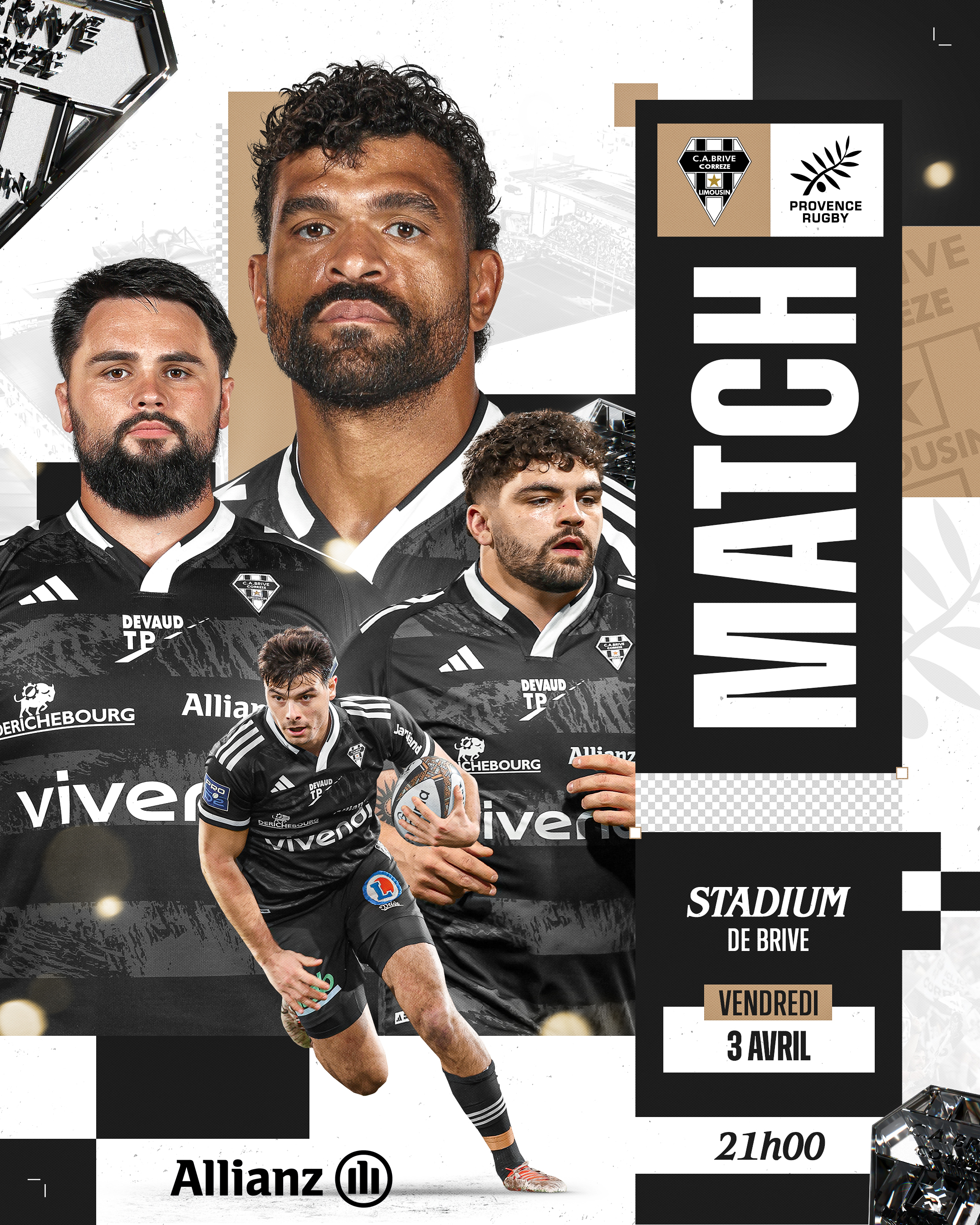 - Haie d'honneur : Supportrices et supporters du CA Brive, rendez-vous dès 19h25 sur le parvis de la tribune Nord pour l'arrivée des joueurs.