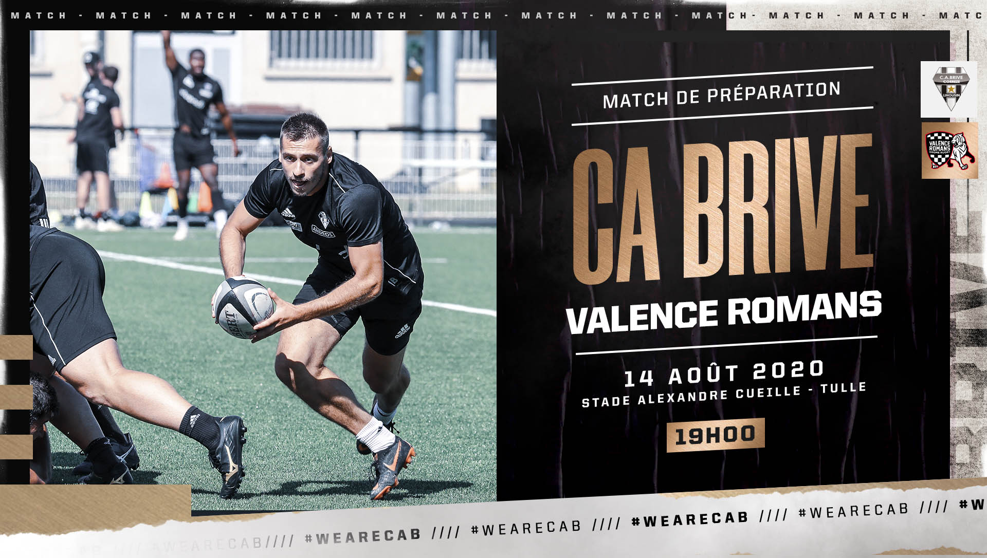 À la suite de l'annulation du match face au Stade Français Paris, le CA Brive affrontera l’équipe de Valence Romans Drôme Rugby, le vendredi 14 août à 19h00 au stade Alexandre Cueille (Tulle).