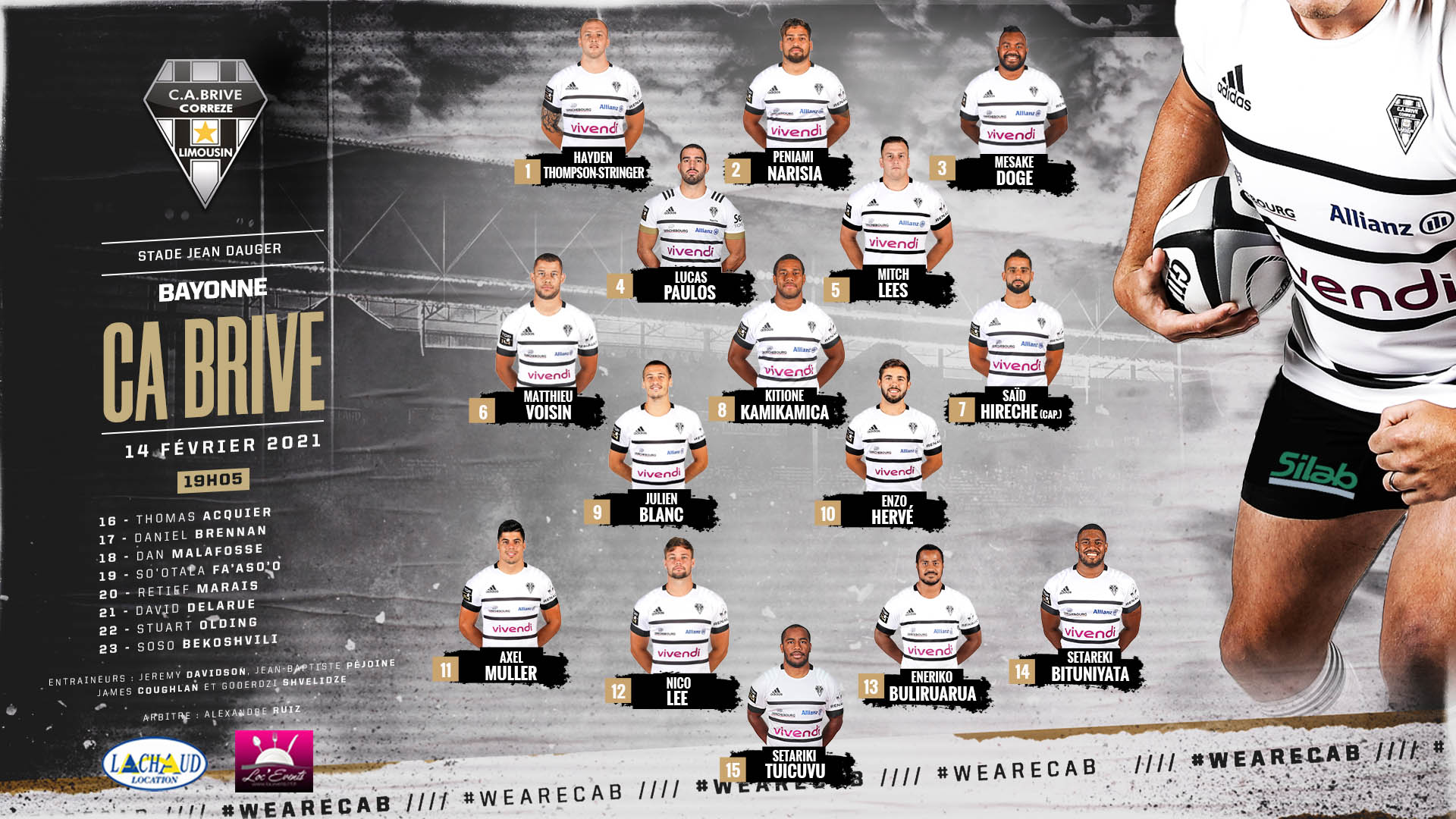 Un live est disponible sur l'application CA Brive Rugby et sur notre compte Twitter @CABCLRUGBY.