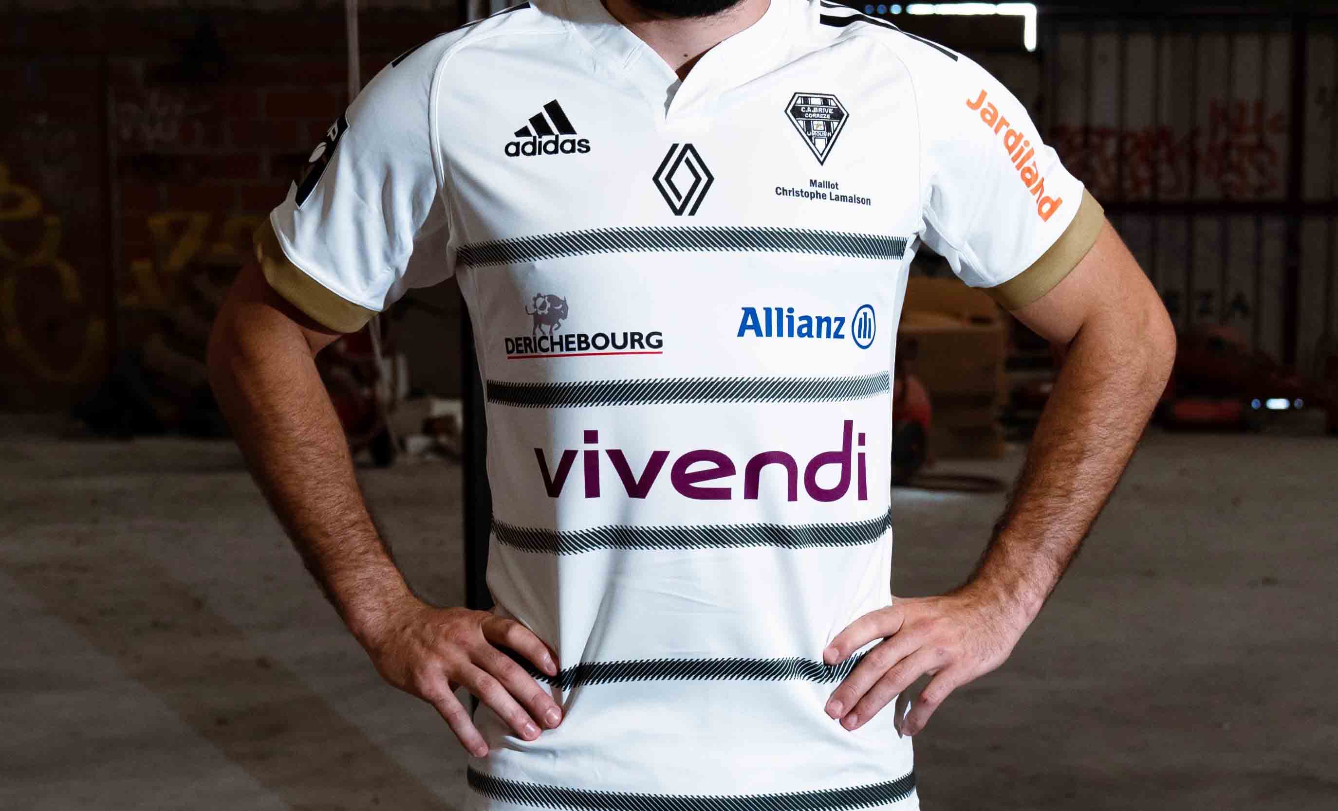 Fidèle à ses couleurs, la tunique briviste allie tradition et modernité en conservant ses bandes noires et blanches. Un effet hachuré a été ajouté pour un design futuriste.