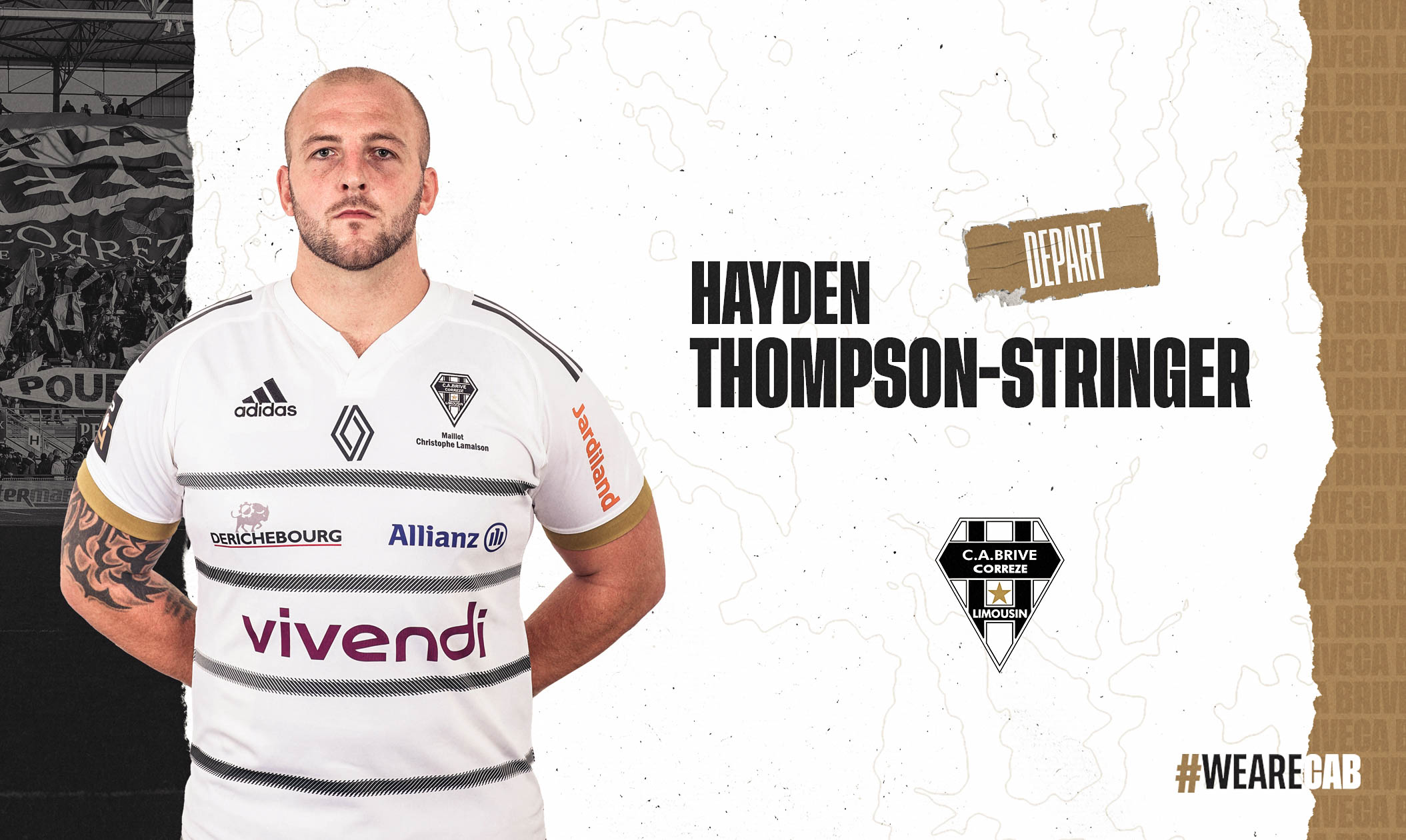 Le CA Brive remercie Hayden Thompson-Stringer pour ses 4 saisons en Noir et Blanc. Il a pu apporter toutes ses qualités de rugbyman et son enthousiasme communicatif tout au long de son passage, contribuant activement au maintien du CAB en Top 14. L’ensemble du club lui souhaite une pleine réussite dans ce nouveau challenge.