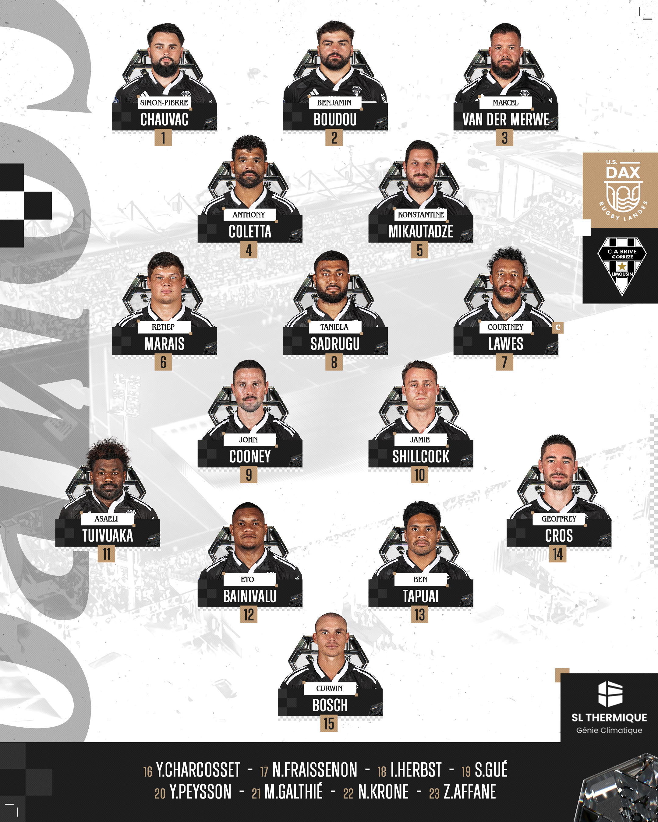 Premier déplacement pour les Corréziens qui ont rendez-vous dans les Landes pour affronter Dax. C'est une équipe remaniée que le staff briviste a décidé d'aligner avec 7 changements dans le XV de départ.
