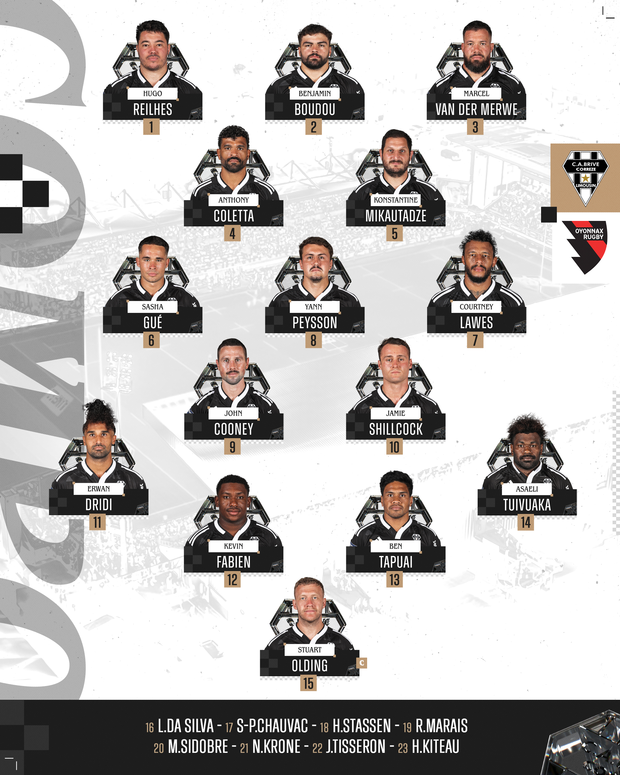 Après une belle victoire la semaine dernière face à Grenoble, les Noir & Blanc affronteront Oyonnax pour la sixième journée de championnat. Ce sera le dernier match du premier bloc de la saison, et plusieurs renforts intègrent la feuille de match afin de terminer sur une bonne note. Découvrez ainsi les 23 joueurs sélectionnés par le staff briviste.