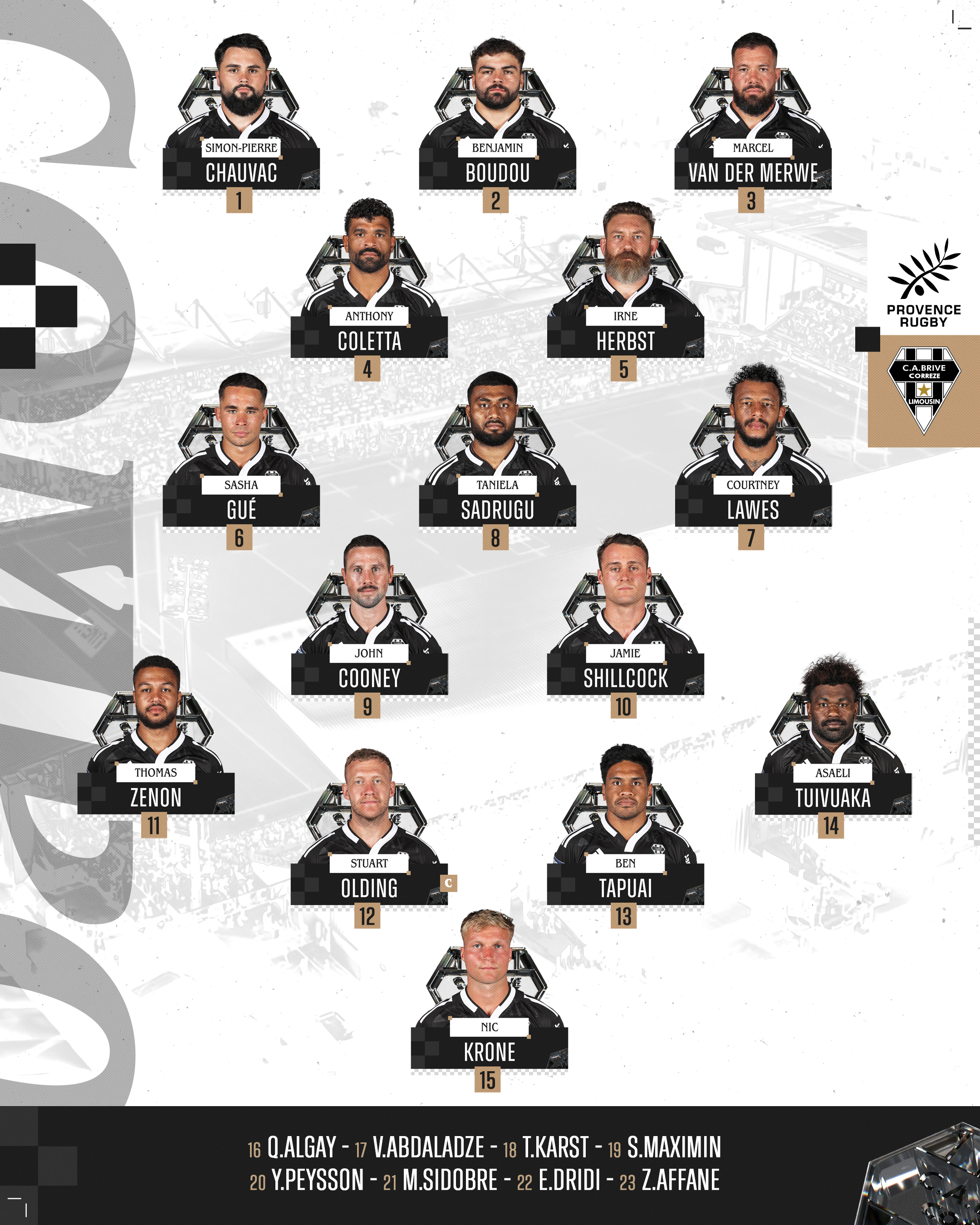 Le XV de départ des Noir & Blanc face à Provence Rugby