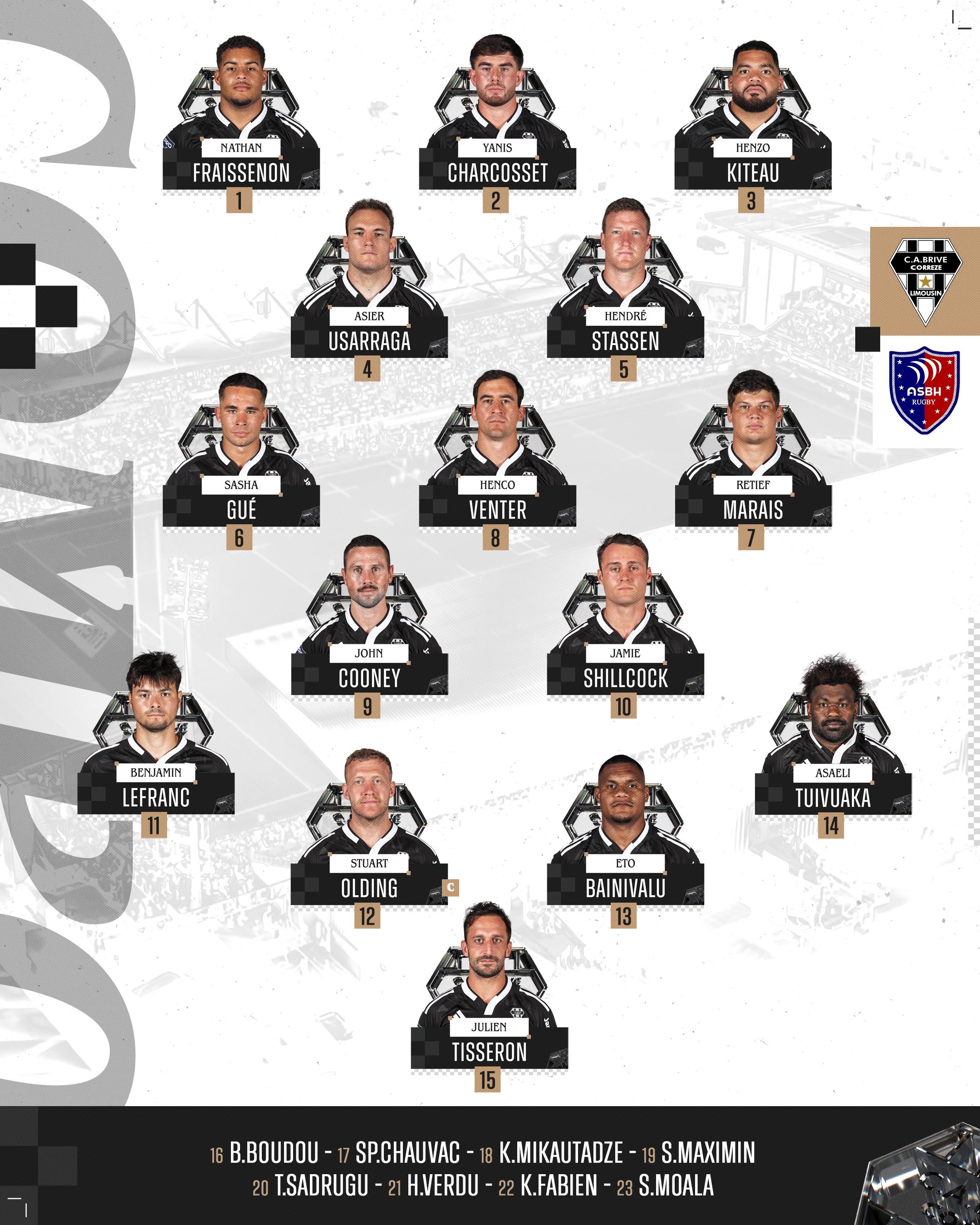 Les 23 joueurs Noir & Blanc alignés face à Béziers
